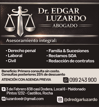 El Dr. Edgar Luzardo ofrece un servicio jurídico integral en Maldonado, con amplia experiencia en distintas áreas del derecho. Brinda asesoramiento profesional en derecho penal, laboral, civil, familia y sucesiones, así como en reclamos ante SOA y redacción de contratos.